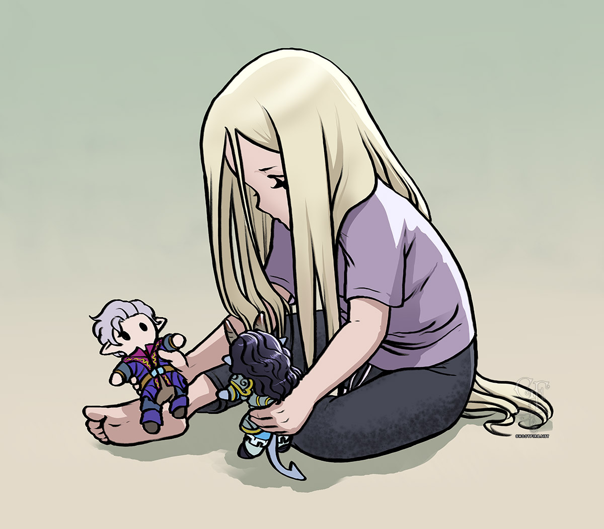 I was feeling sick, so I doodled little me playing with some comfort characters - Astarion and my Tav, Ottilenne.