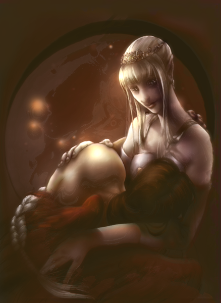 Originally done for epilogue.net's "Gallery of Souls". Though the pencil version came easily, the colored piece went through several different incarnations, including one that I displayed as finished briefly, before I finally decided it was ready for submission. Myself and my soul's love, guardian, and completeness.