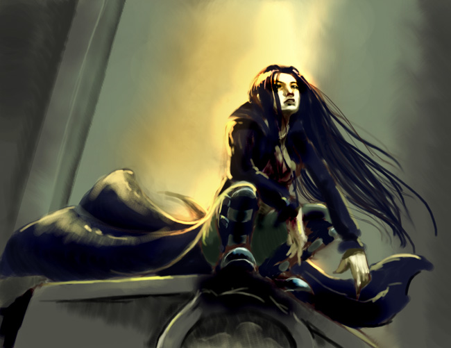 A very quickly done but still incredibly satisfying piece of Teresa just coming to light atop a dark building.