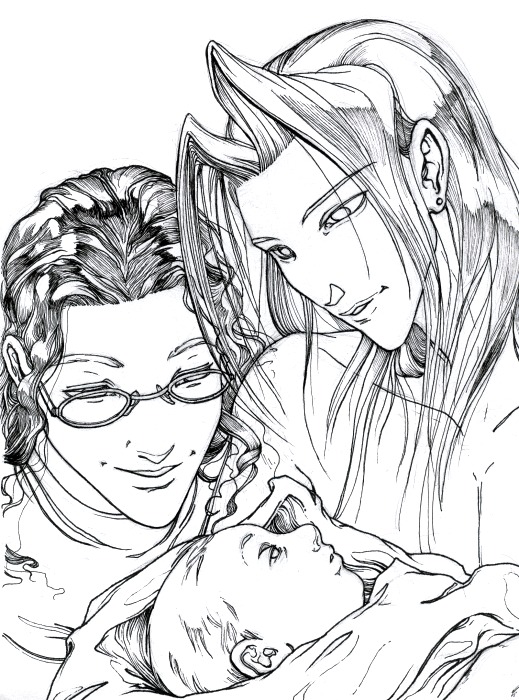 I made Sephiroth adorable. And innocent. And happy! I made him look like a daddy! Sephiroth, baby Riku, and Jeanette (original character). This is an illustration for the fanfic "Behind Blue Eyes" by Serena, and based on the premise that Sephiroth is Riku's father. Of course, this is a few years before that whole going insane and trying to destroy the planet thing.