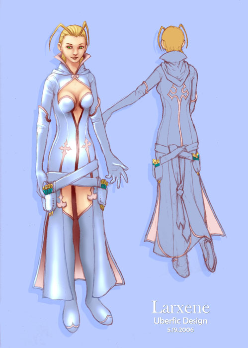 This redesign of Larxene, from Kingdom Hearts 2, was meant to go along with a fanfic that two of my friends and I were writing together. It was a multi-multi-verse crossover stemming from Serena's two epics, "Behind Blue Eyes" and "Shadow of Fate".