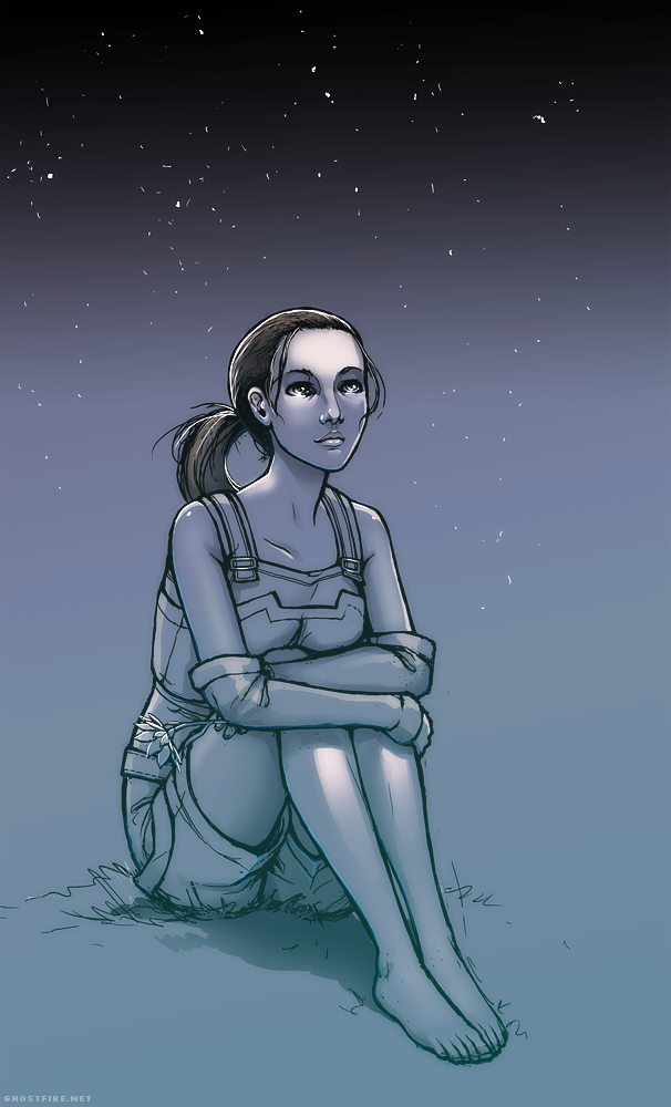 This one only barely qualifies as fanart, though at heart it is my Brenna Shepard - 15 years old. As a colonist, she has a few months left before losing everyone she ever held dear. A career in the Alliance navy? Not likely. A crew of mercenaries, enemy agents, and aliens? Unthinkable. She's still a child - never for a minute dreaming that one day the fate of countless billions of lives will come to rest on her shoulders.