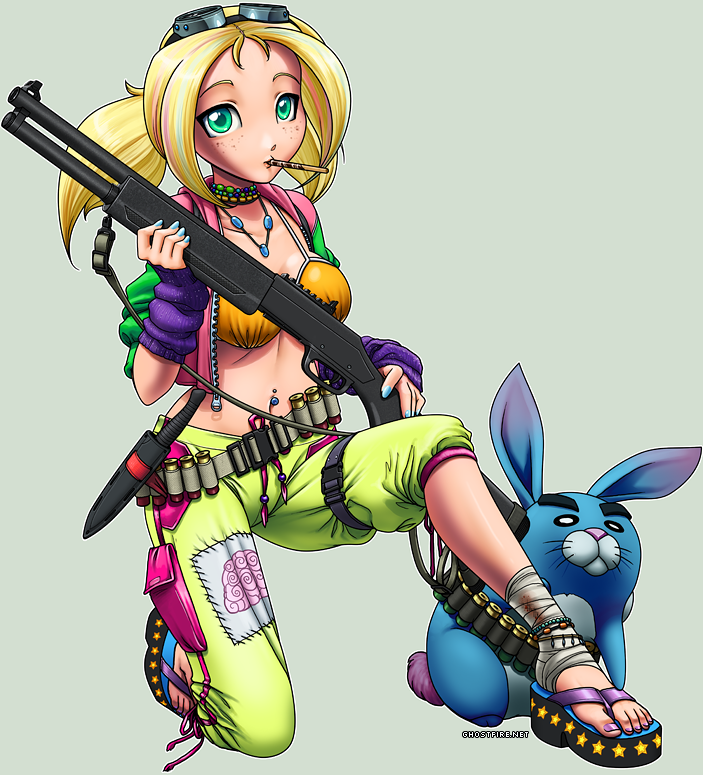 Anime Overload's mascots, this time in raver girl zombie hunter form. Apparently there's still pocky, even in the zombie apocalypse.